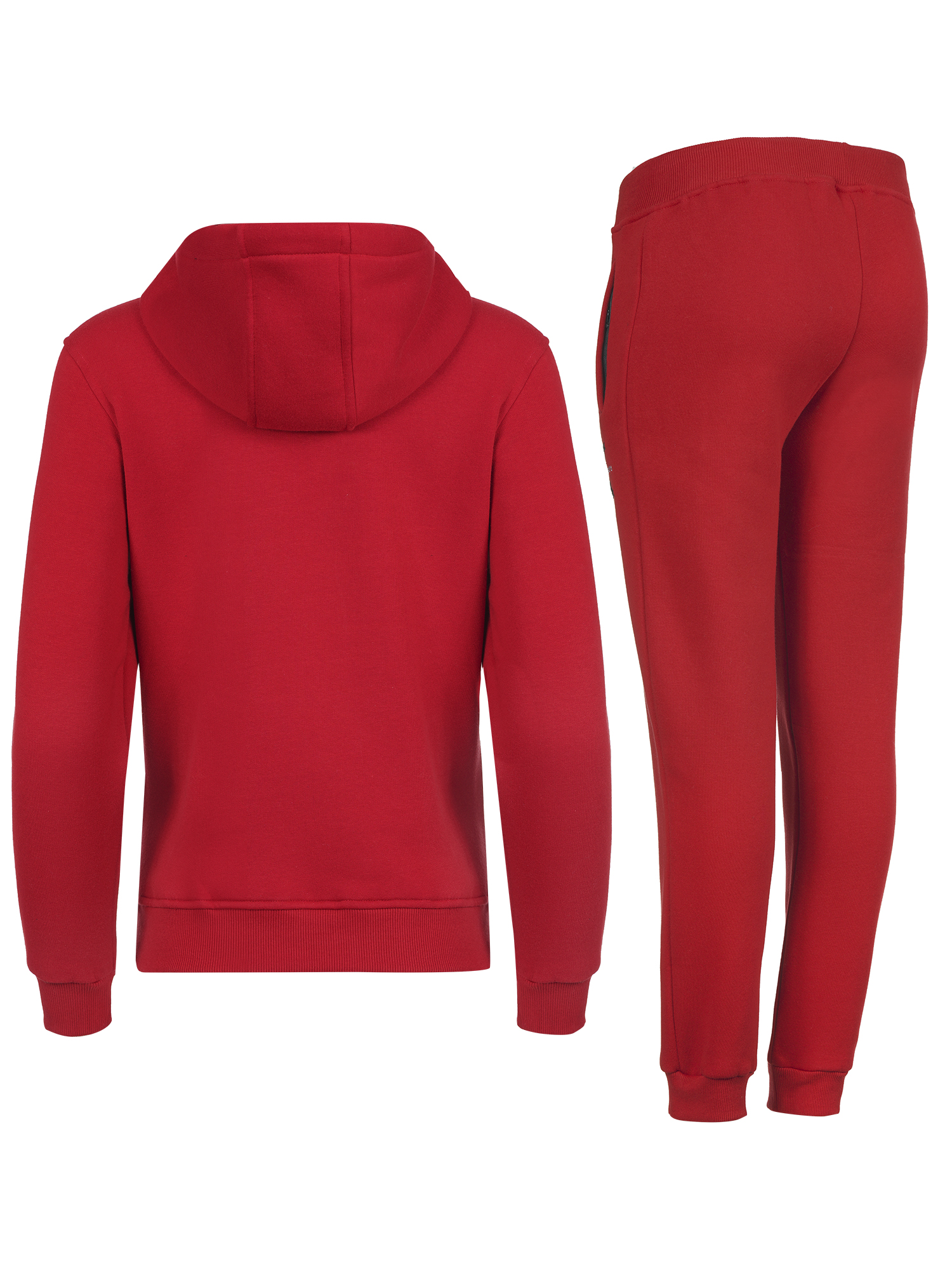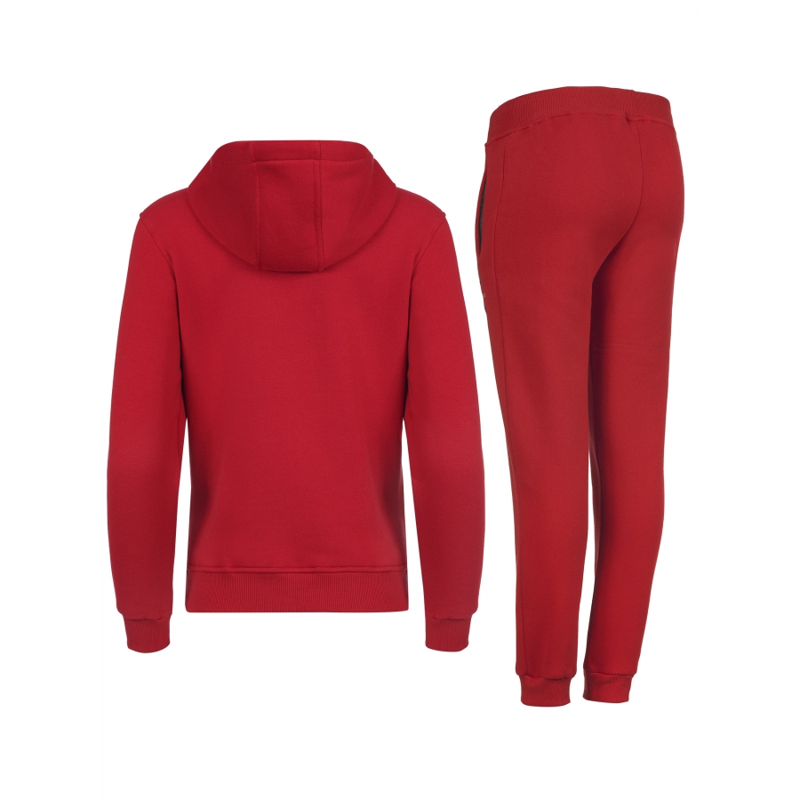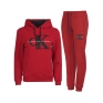 Суитшърт с качулка и връзки,джоб тип “ кенгуру“ и голямо бродирано лого,панталон с ластичен колан с връзки и маншети на крачолите,два джоба с цип и бродирано лого.