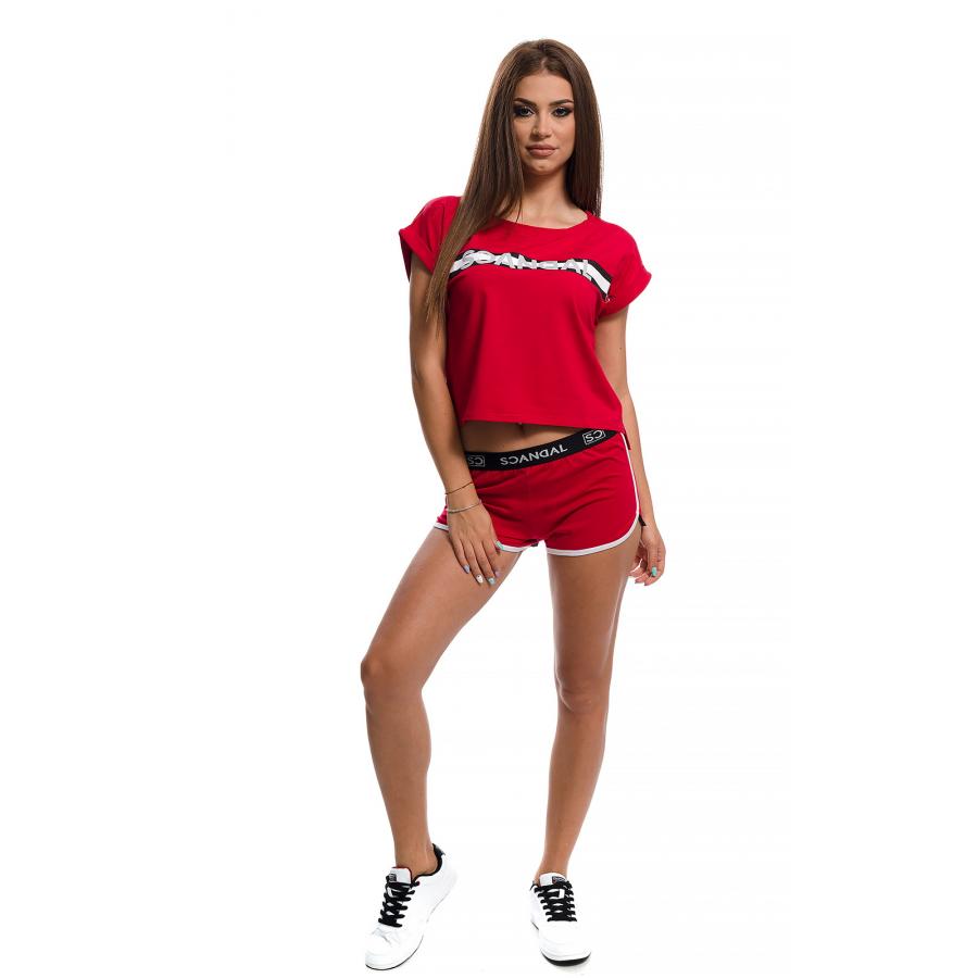 Дамски летен сет от панталонки със широк колан и свободна тениска , с ефектна щампа.От колекцията - пролет/лято 2020г. на бранда SC-Elements.Скандален и провокативен летен сет от еластична комфортна за носене материя