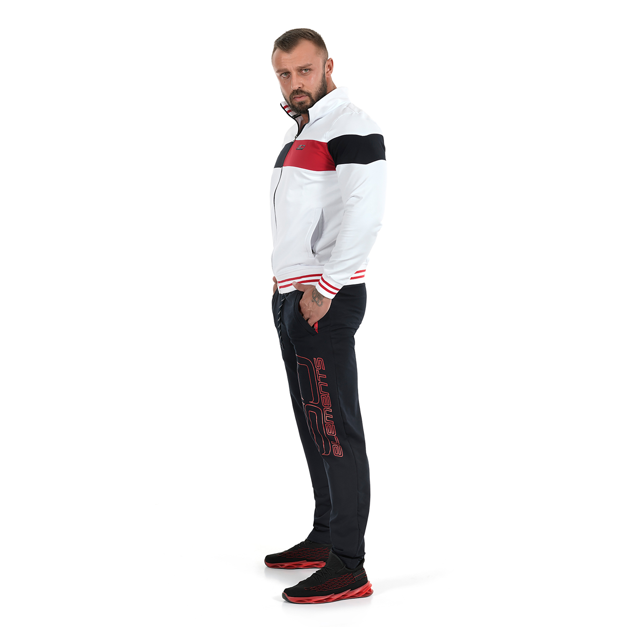 Мъжки спортен екип подходящ за ежедневието.Изработен от памук с еластан – еластична материя,която не се мачка.
