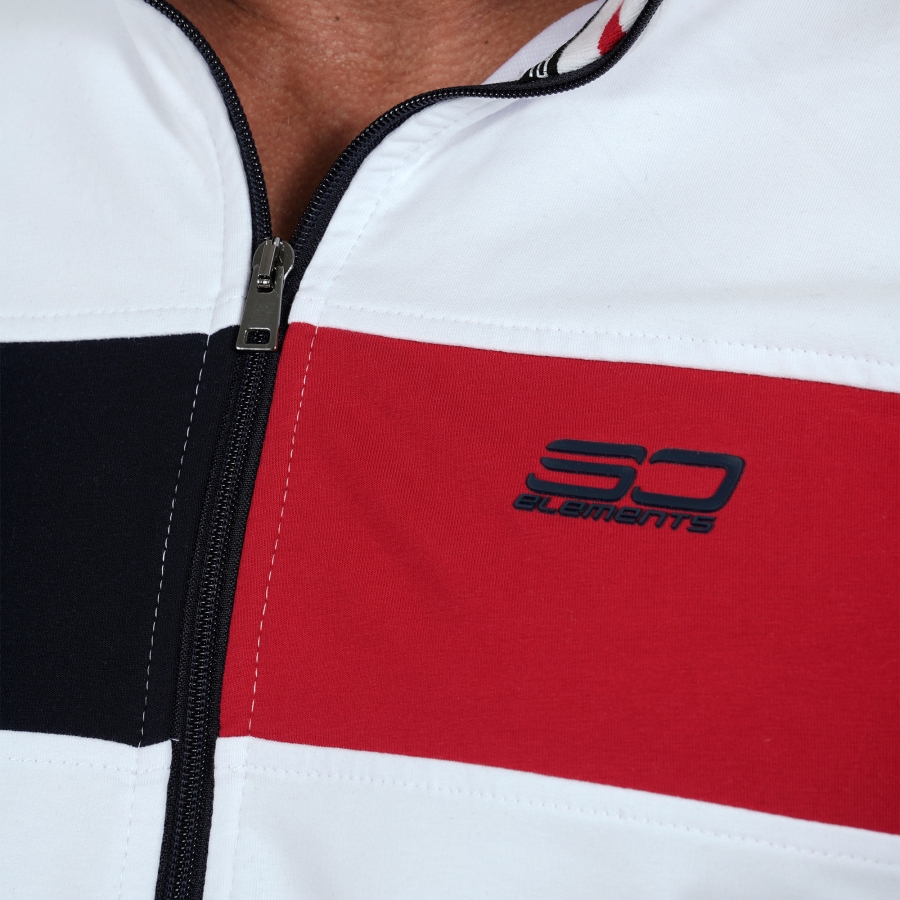 Горницата е в три цвята със широки цветни маншети и висока яка,закопчаване с цип.