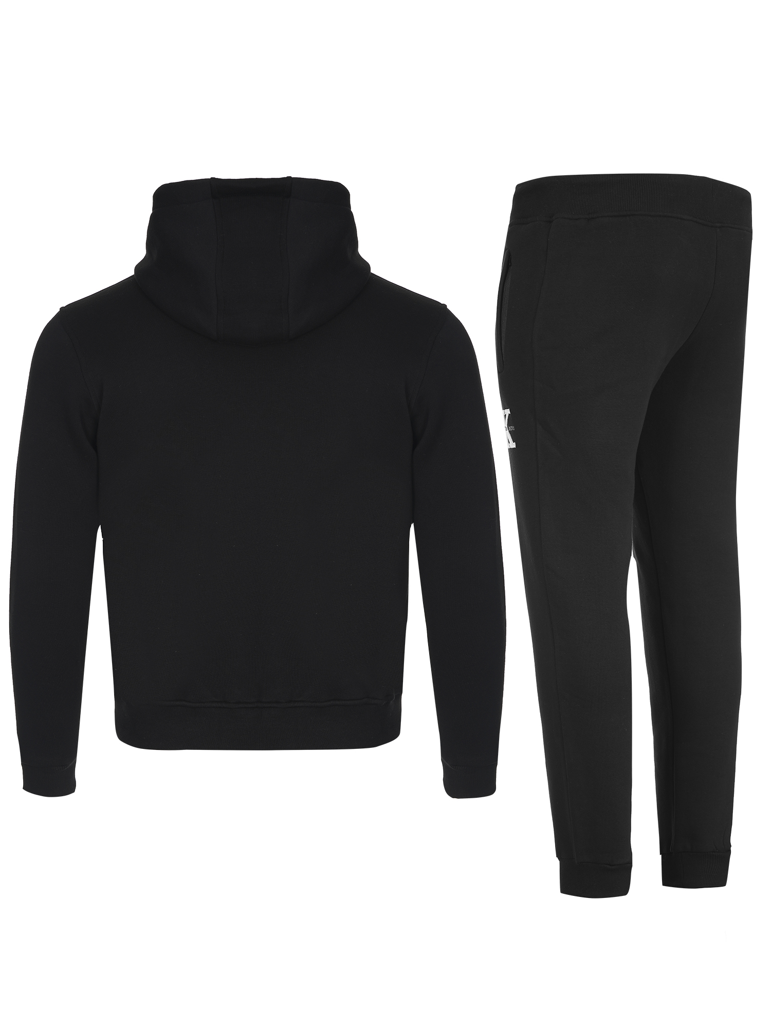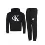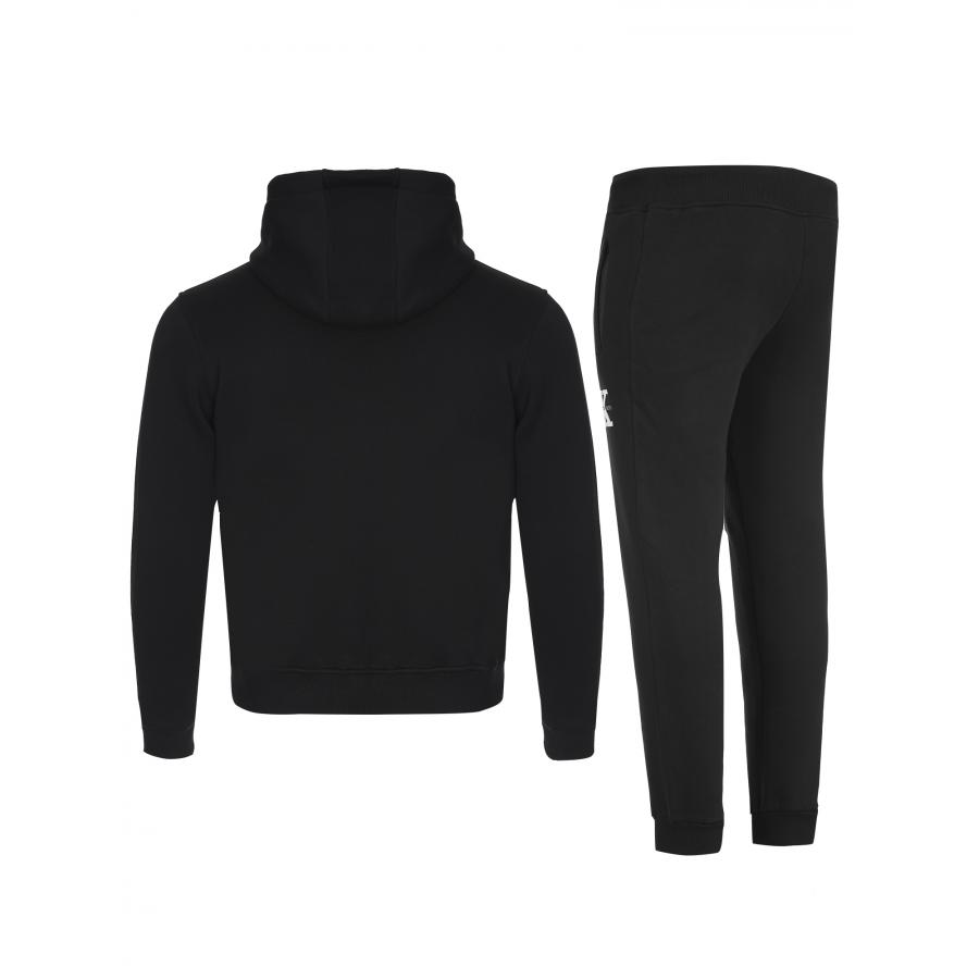 Мъжки спортен екип от 2 части,ватирана памучна материя подходяща за студените зимни месеци.Суитшърт с качулка и връзки,джоб тип “ кенгуру“ и голямо бродирано лого,панталон с ластичен колан с връзки и маншети на крачолите,два джоба с цип и бродирано лого.Материя е мека и еластична ,ватирана,допринасяща за комфорта и топлината през студените дни.