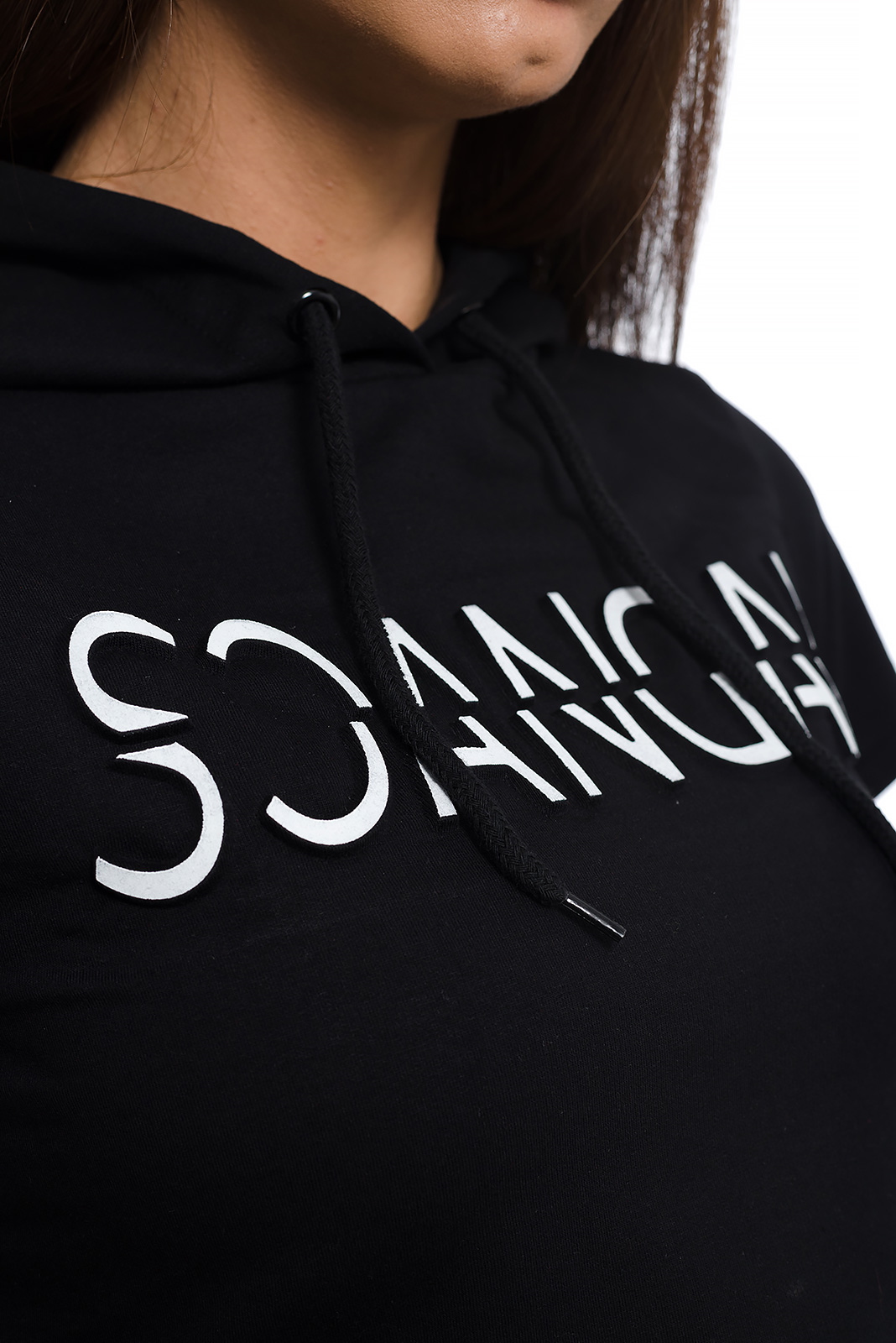 Дамски летен сет от панталонки и къса тениска с качулка, с ефектна релефна щампа.От колекцията - пролет/лято 2020г. на бранда SC-Elements.Скандален и провокативен летен сет от еластична комфортна за носене материя