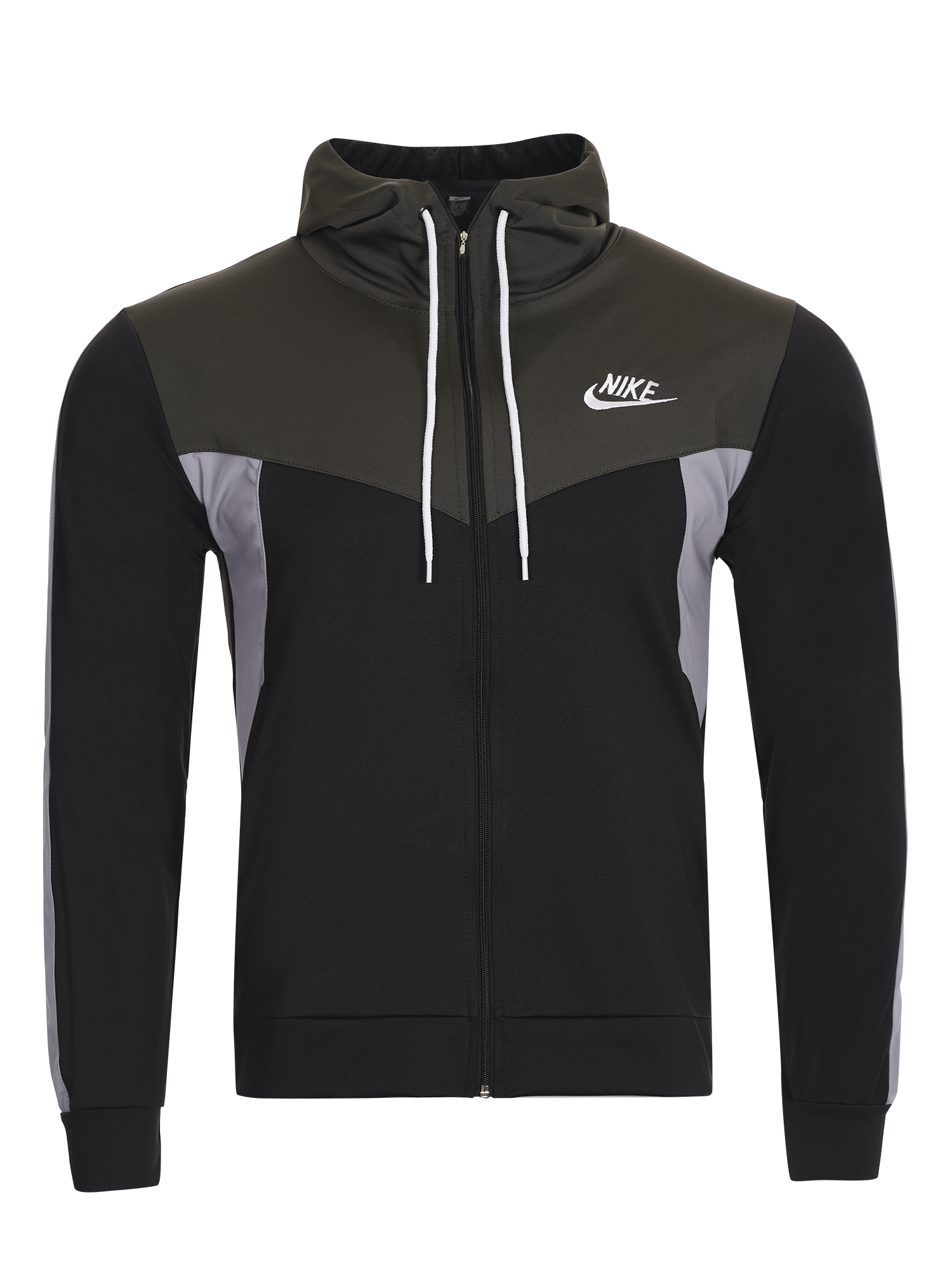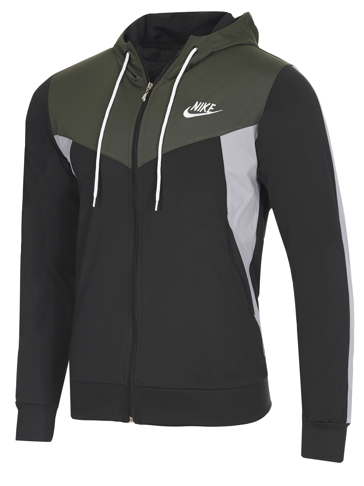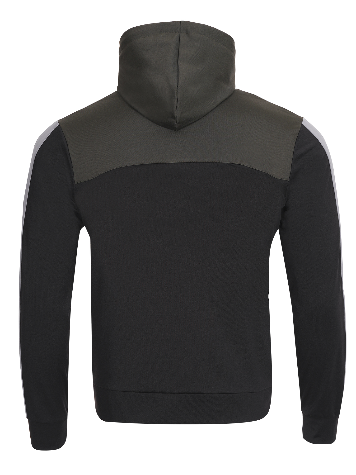 Мъжки спортен екип подходящ за  спорт и ежедневие.Екипа е полиестерен с ластични маншети  и колан,с висока яка и качулка.Има странични джобове,закопчаването е с цип.