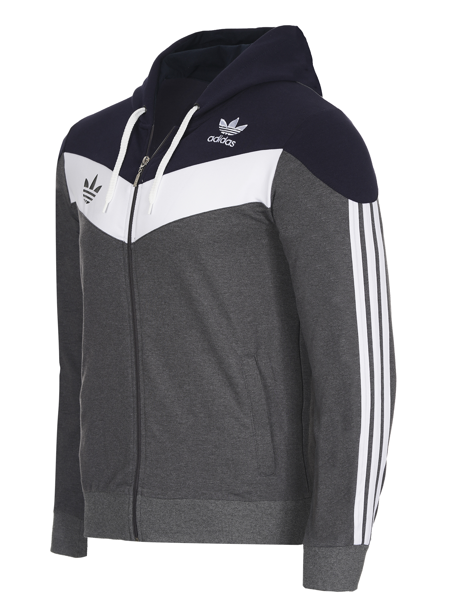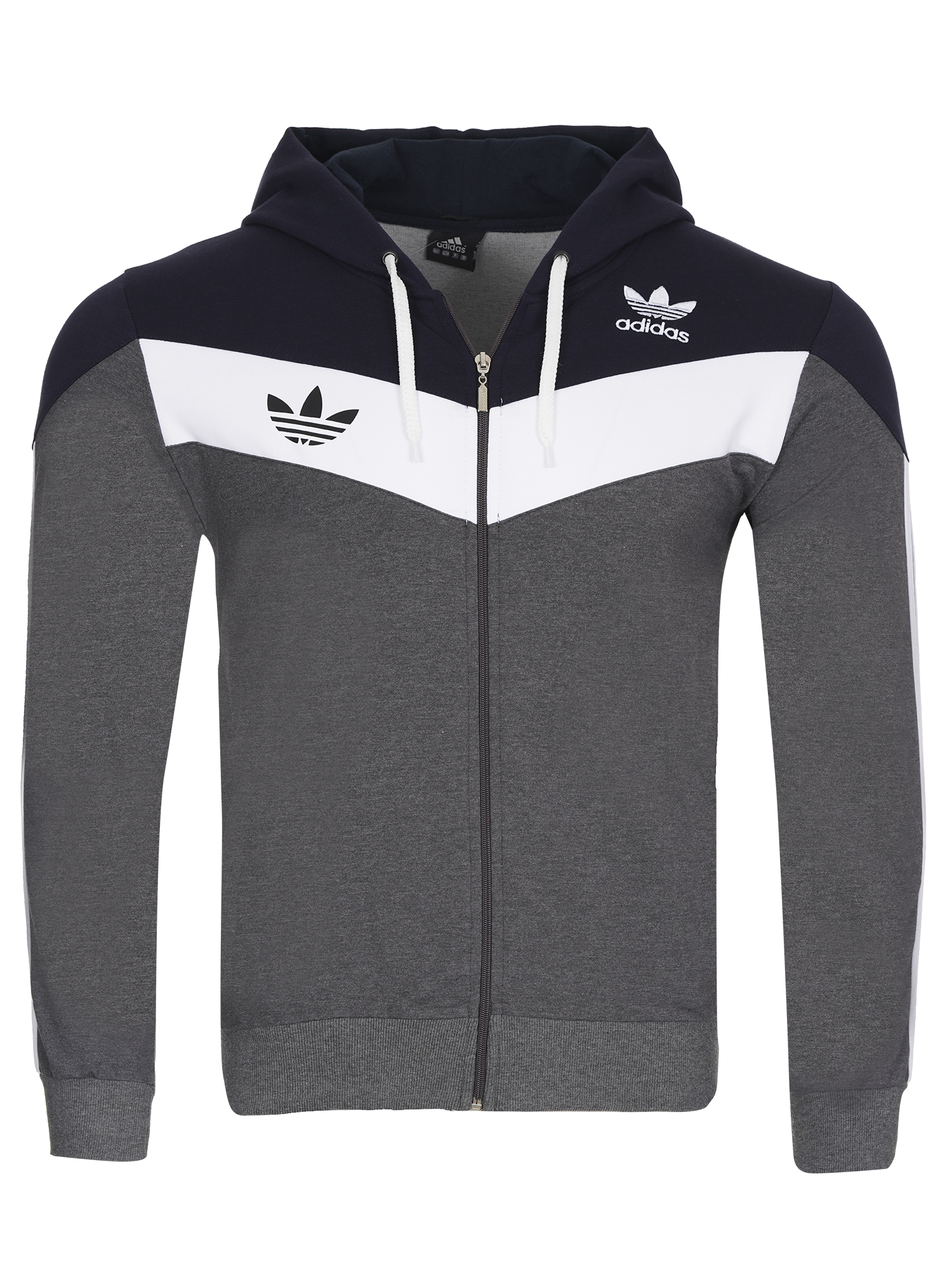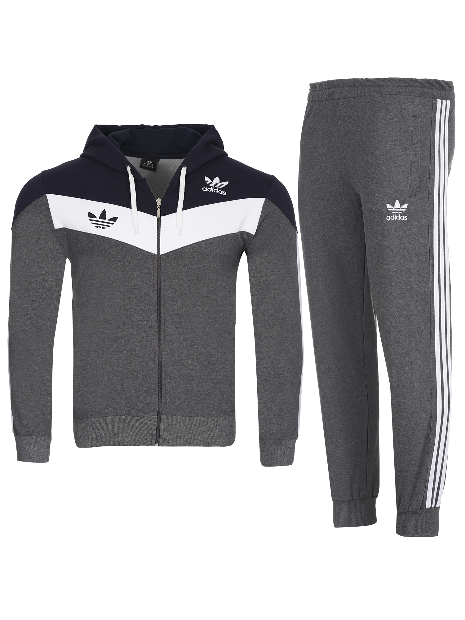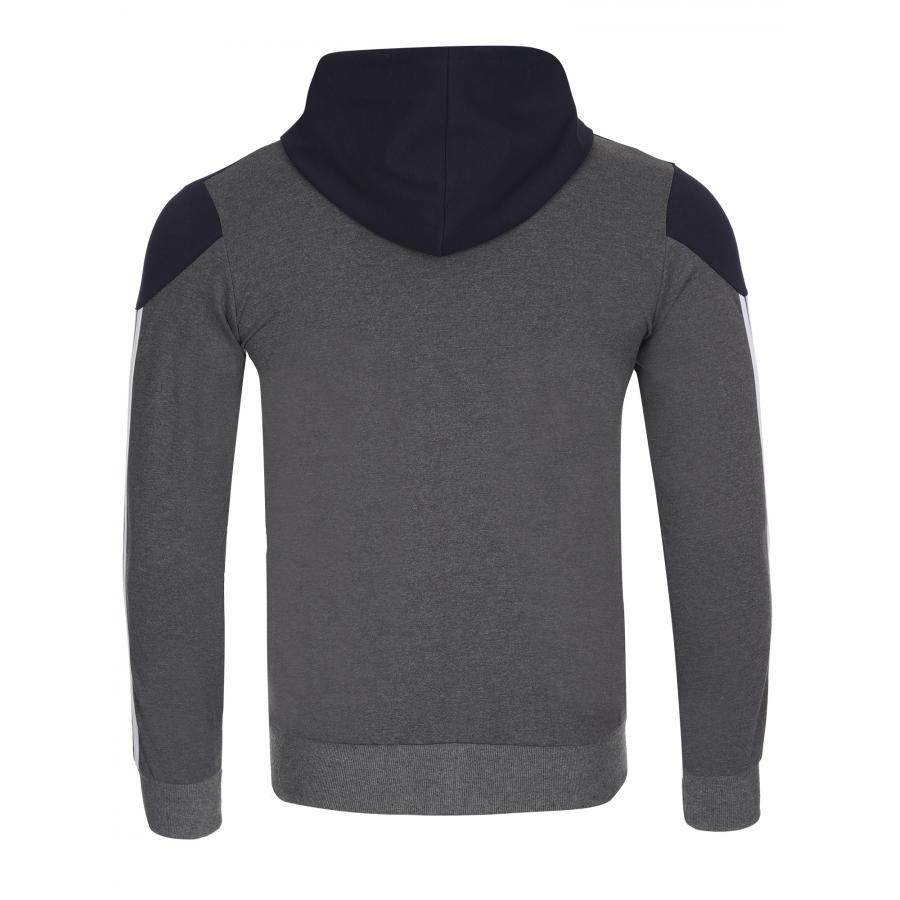 Екипа е изработен от памук с ликра,здрава и комфортна за носене материя.Закопчаването е с цип,има висока яка и качулка.Джобове с цип на горницата и долница,ластични маншети и колан.