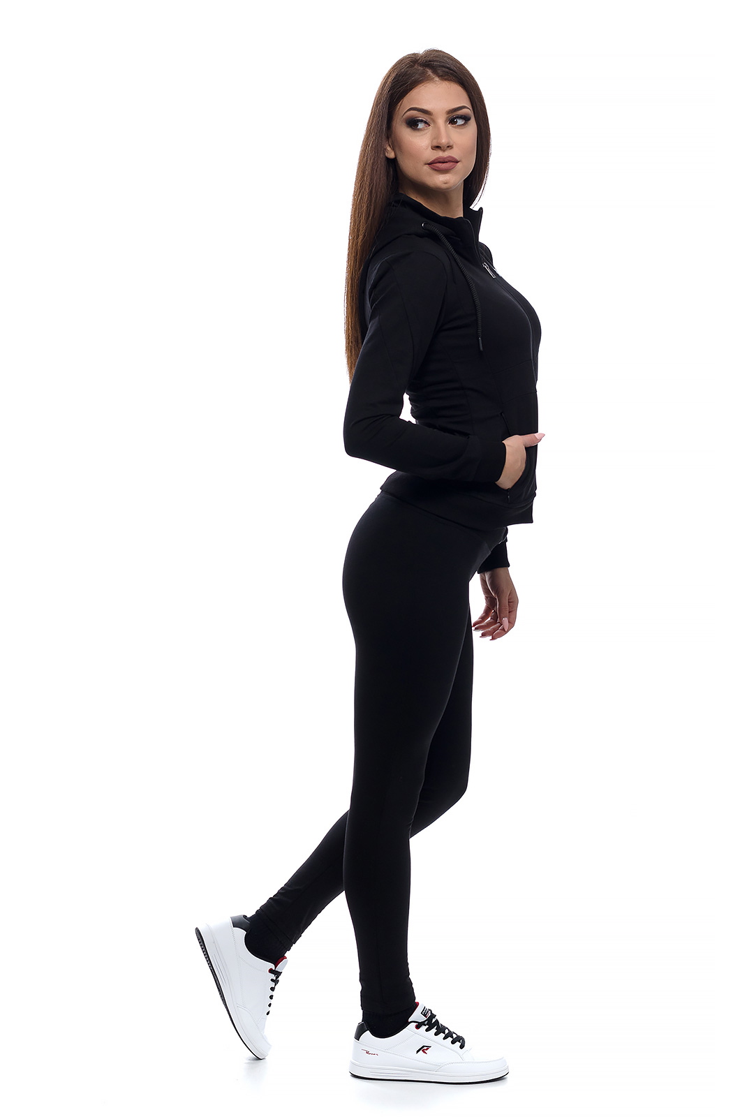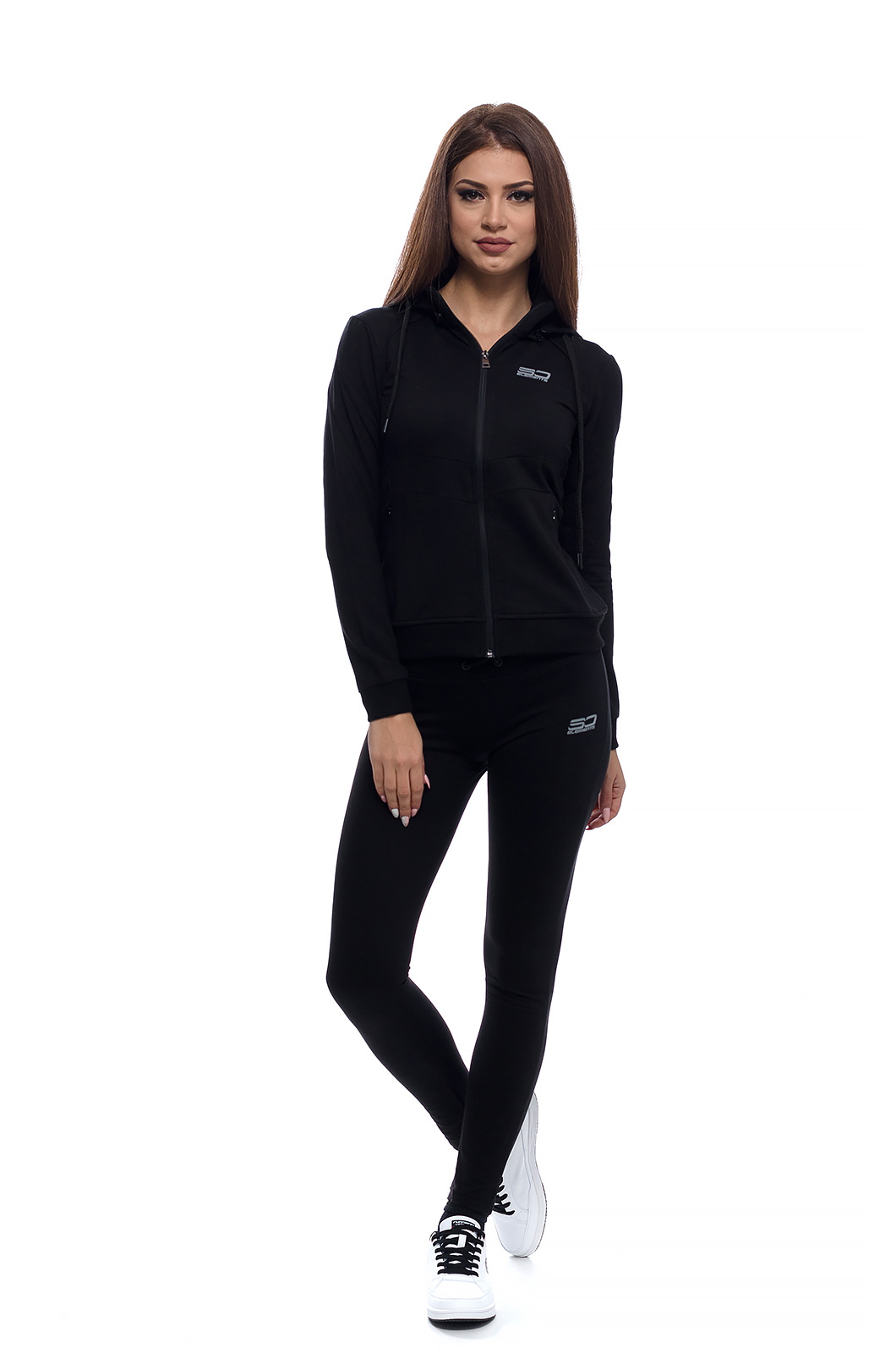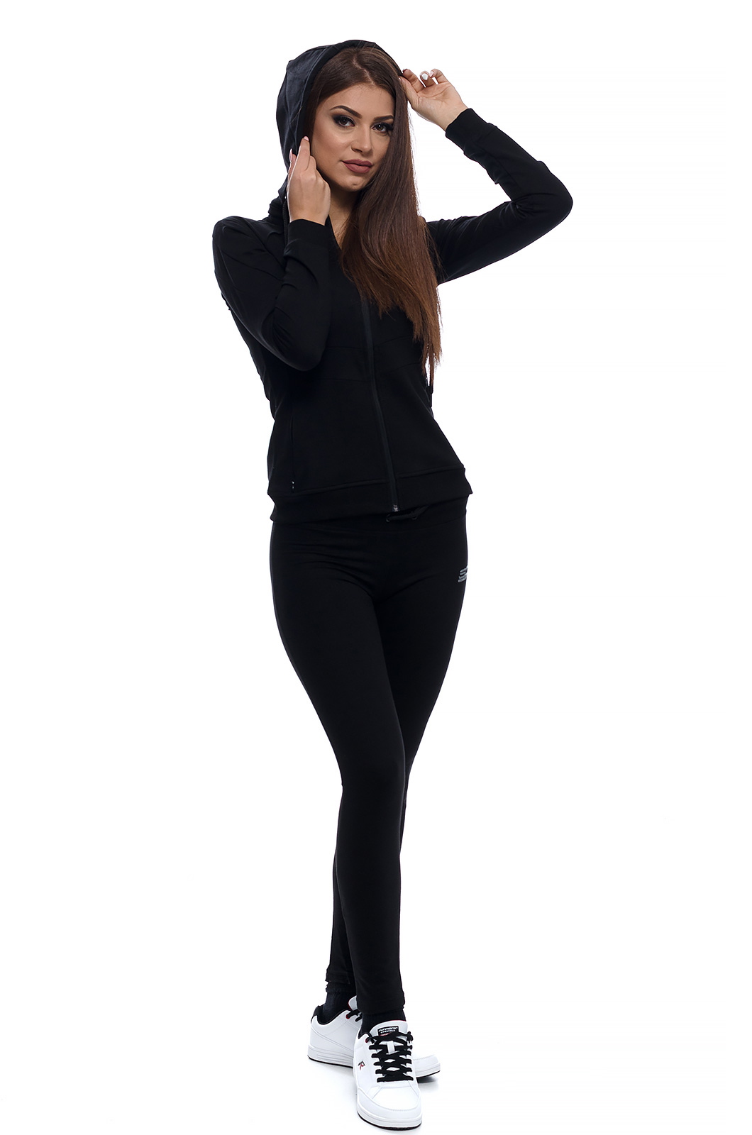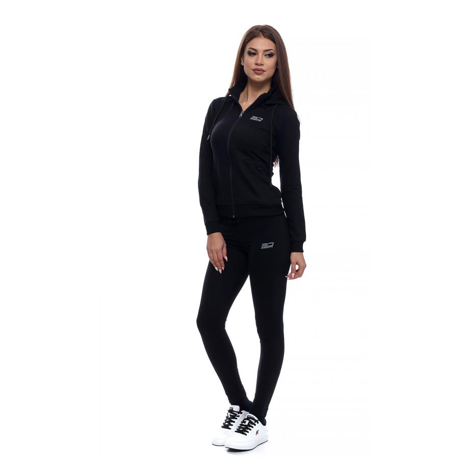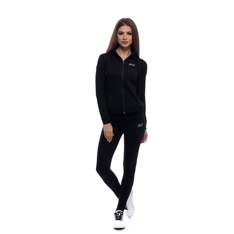 Дамски памучен екип в семпъл изчистен модел, подходящ за спорт и ежедневие.Прилепнал силует с възможност да се носи с качулка или без.