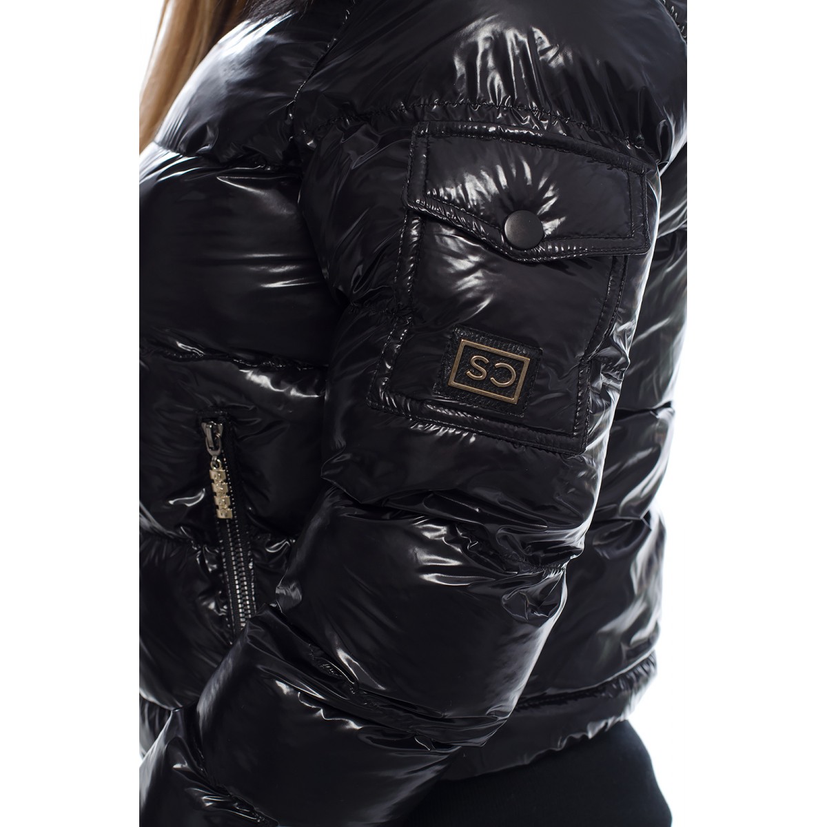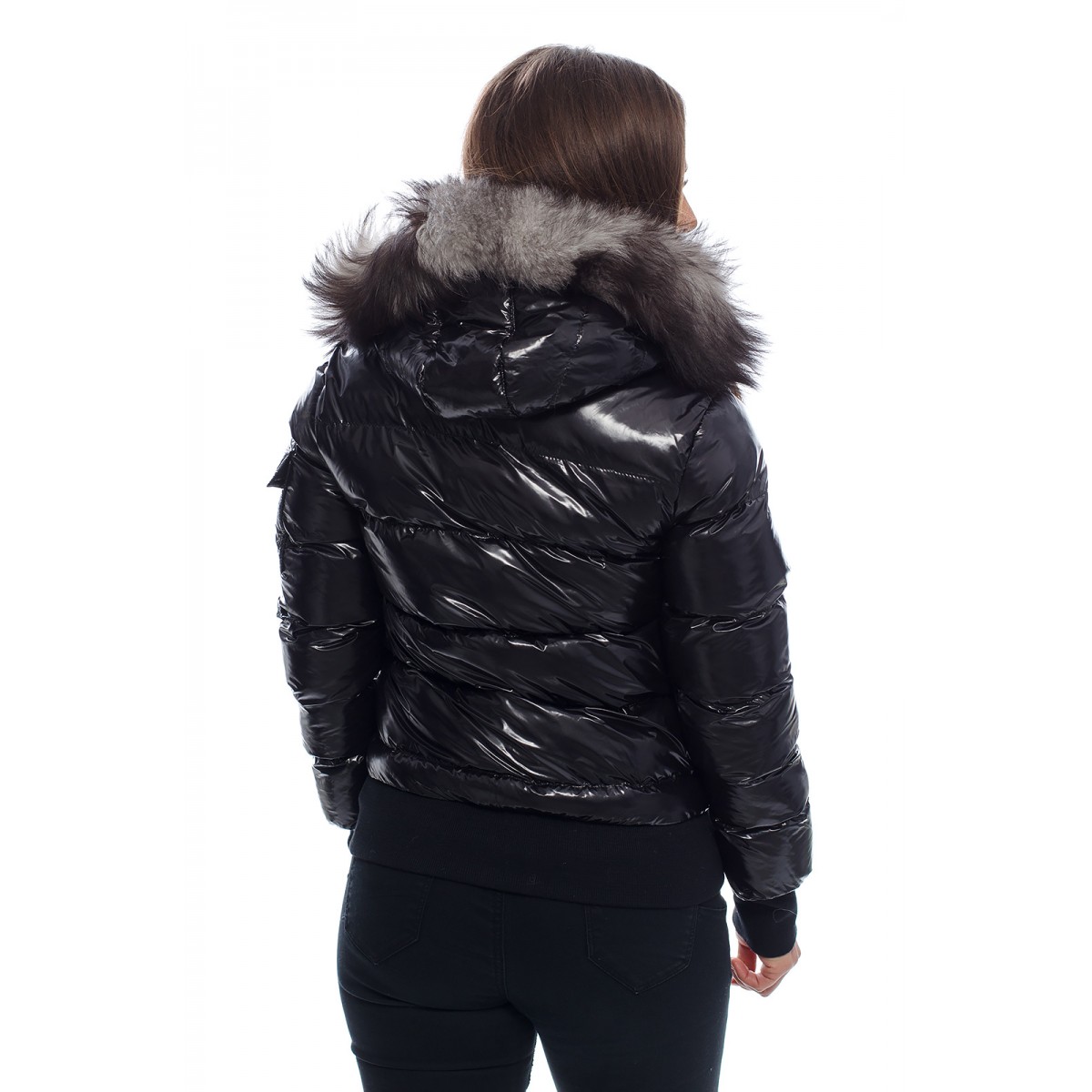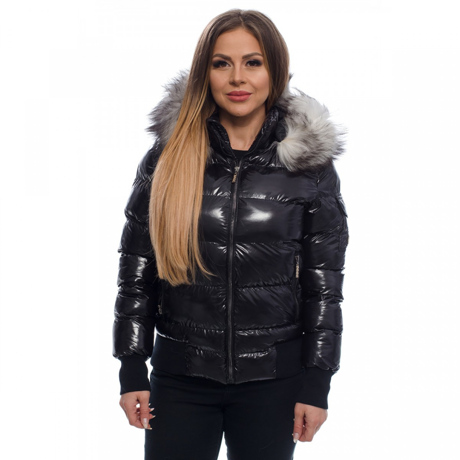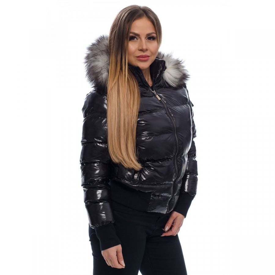 Яке с естествен пух на качулката "SC" Collection черен лак | scandalshop.com